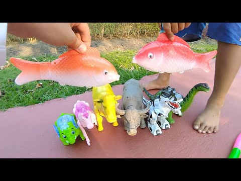 แข่งปลาสีแดงกับสีส้มใรสนาม ช้าง ม้า วัว ควาย เป็นกองเชียร์ Fish cow buffalo elephant dinosaur horse ...