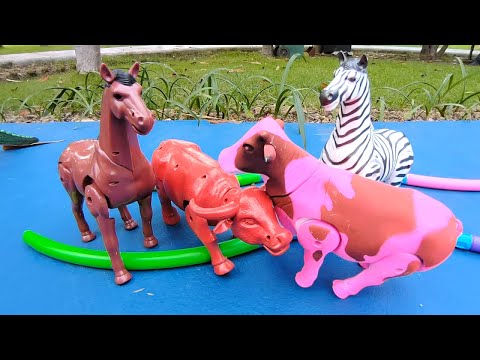 พาวัว ควาย ม้าของเล่นมาเจอกับม้าตัวจริงในคอก buffalo cow horse zebra ขอบคุณที่ติดตามรับชมนะครับ Tha...