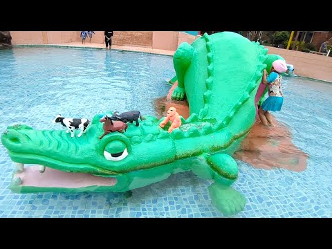 cow buffalo elephant horse ride crocodile วัว ควาย ช้าง ม้า ขี่หลังจระเข้กลางสระน้ำ ขอบคุณที่ติดตามร...