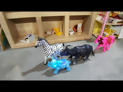 มารายงานตัวแล้วจ้า ม้า ม้าลาย ไดโนเสาร์ วัว ควาย ช้างน้อยเดินเล่นข้างๆสระน้ำ Elephant cow horse zebr...